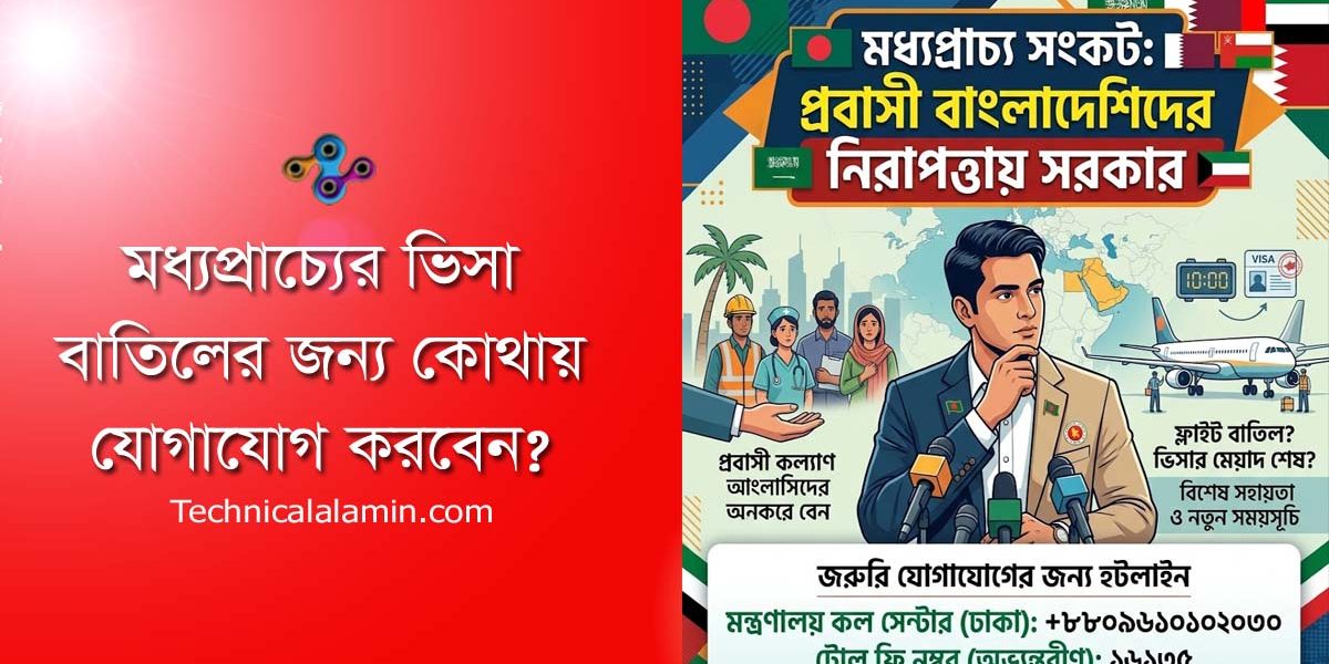 জরুরি হটলাইন ও বিশেষ সহায়তা চালু ২০২৬ । মধ্যপ্রাচ্য সংকটে প্রবাসী বাংলাদেশিদের নিরাপত্তায় সরকার? - Technical Alamin