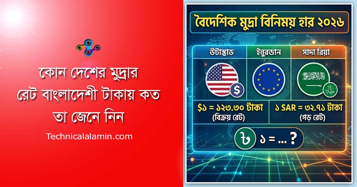 বৈদেশিক মুদ্রা বিনিময় হার ২০২৬ । ইউএস ডলার সহ অন্য সব মুদ্রার বাংলাদেশী রেট কত?