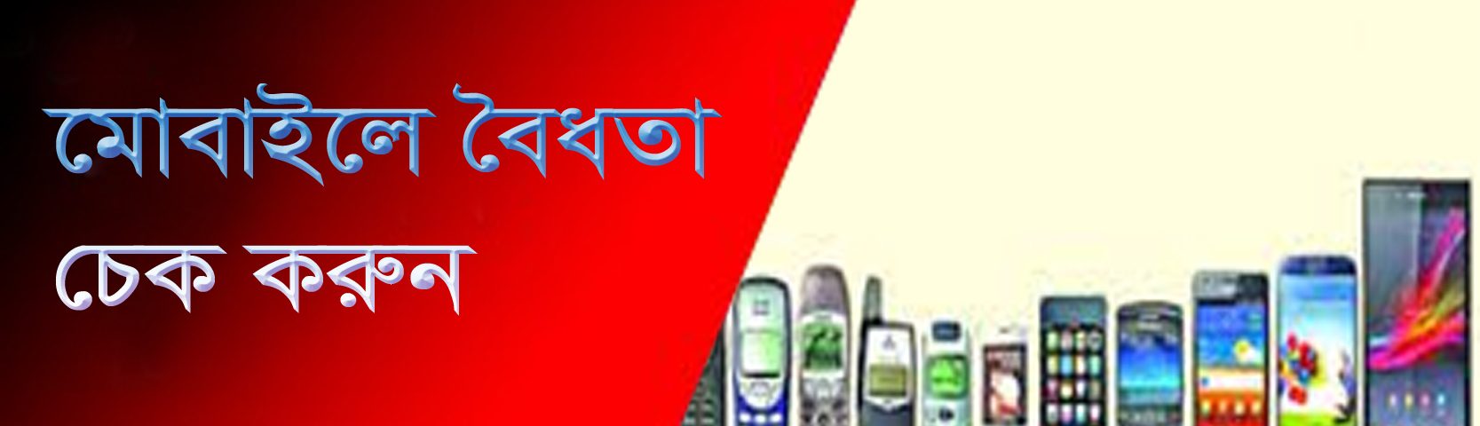 মোবাইল ফোনের মেসেজ অপশনে গিয়ে KYD <space> ১৫ ডিজিটের IMEI নম্বর লিখে ১৬০০২ তে প্রেরণ … Continue reading বৈধ মোবাইল ফোন হ্যান্ডসেট ক্রয় সংক্রান্ত সতর্কীকরণ বিজ্ঞপ্তি।