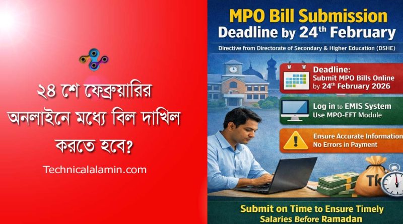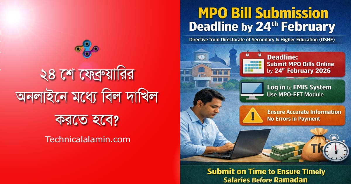 ২৪ ফেব্রুয়ারির মধ্যে ফেব্রুয়ারি মাসের এমপিও বিল সাবমিটের নির্দেশ: মাধ্যমিক ও উচ্চ শিক্ষা অধিদপ্তর