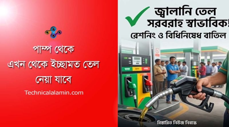 জ্বালানি তেল বিতরণে রেশনিং ও সব ধরনের বিধিনিষেধ প্রত্যাহার ২০২৬ । ইচ্ছামত তেল নেয়া যাবে পাম্প থেকে?