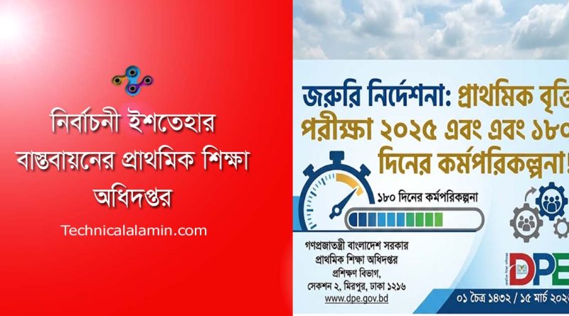 প্রাথমিক বৃত্তি পরীক্ষা ২০২৫-এর নীতিমালা এবং সরকারের নির্বাচনী ইশতেহার বাস্তবায়নে প্রাথমিক শিক্ষা অধিদপ্তর (DPE) কর্তৃক